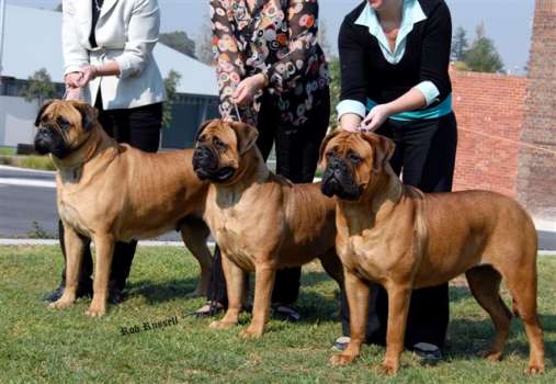 From the left grand dam "Millie" Ch. Bulltiful Curtain Call, daughter "Ruby" Ch. Bulavista Pretty Woman and grand daughter "Sari" Ch. Bulavista Millsweet Sari
