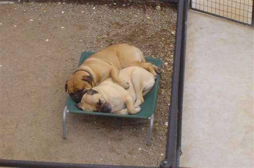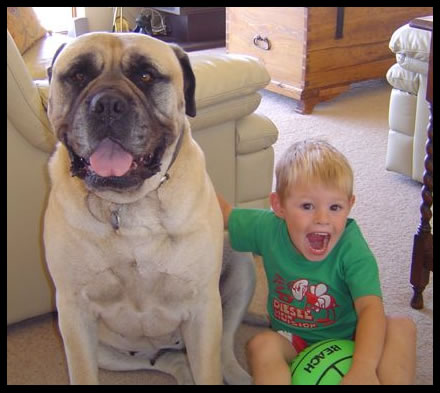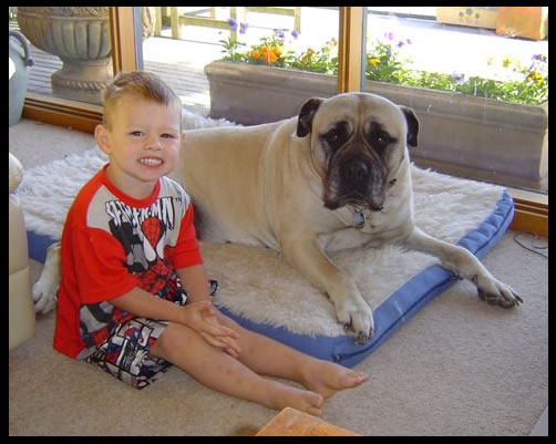 Kasey is our first Bullmastiff, and has always loved meeting people. She enjoyed the show ring in her early days and we were so proud when she became our first Australian champion. She is the dominate girl of our family and being the first, she believes she is "Number One". Although not overly fond of some other females, she has always loved the boys and is happy to spend time with any of them, especially Cruz as they often share the same bed...... with two beds in their room, they are more often than not seen to be cuddled together on the same one......these two are such good mates.