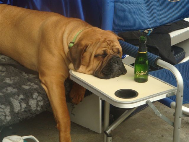 Dog shows can be so exhausting........ Shalo after her "Puppy bitch" win