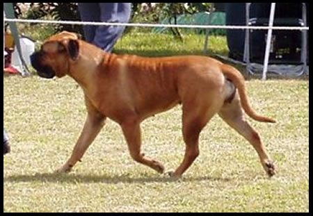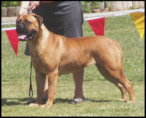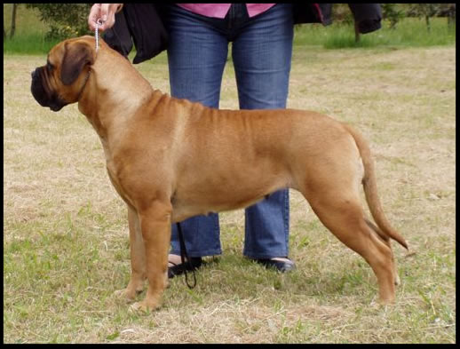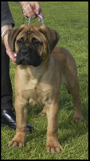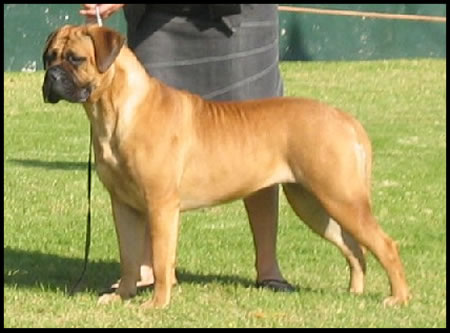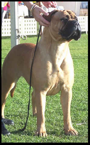 Ruby is the first Bulavista Australian Champion gaining her title on the 19th November, 2005 at the age of 19 months. She is the first in her litter to achieve a title. To date, Ruby has done remarkably well in the show ring winning Best In Show & Junior In Show at the BCV Bullmastiff Specialty Open Show in May 2005. She followed this great win by taking Junior In Show from 29 entries at the 3rd National Bullmastiff Specialty Championship Show in June 2005 under Breed Specialist Judge, Mr Chris Quantrill of Licassa Bullmastiffs, UK. Ruby is a multiple CC and Reserve CC winner. Like her dam she is a Best In Specialty show winner consistently winning under breed specialists. We have no doubt with the numerous comments by Specialist and All Round Judges alike, Ruby has a very promising and long career ahead of her.